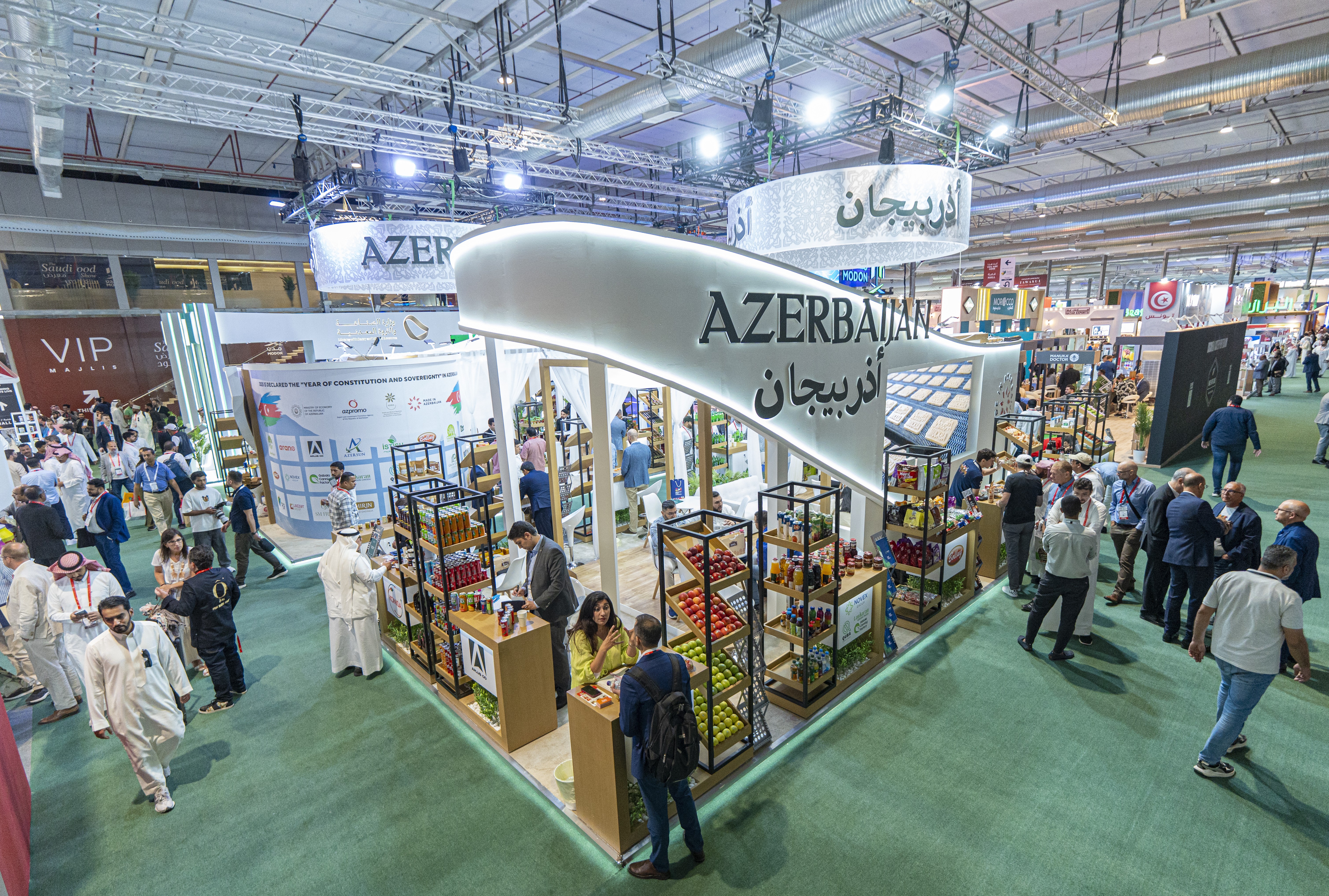 Azərbaycan stendində təbii bal, qənnadı məmulatları, mineral sular, konservləşdirilmiş məhsullar, quru meyvələr, meyvə-tərəvəz və digər ərzaq məhsulları nümayiş olunub. Ziyarətçilərə Azərbaycan məhsullarının keyfiyyəti, istehsal texnologiyaları və ixrac imkanlarını əks etdirən videoçarxlar təqdim edilib. Sərginin ilk günündən etibarən “Made in Azerbaijan” brendi böyük maraqla qarşılanıb. Xüsusilə konservləşdirilmiş məhsullar, qənnadı məmulatları, meyvə-tərəvəz və alkoqolsuz içkilər potensial idxalçılar tərəfindən maraq doğurub. Sərgi çərçivəsində yerli şirkət nümayəndələri ilə xarici tərəfdaşlar arasında bir sıra işgüzar görüşlər keçirilib, mümkün əməkdaşlıq istiqamətləri və ixrac imkanları ətrafında müzakirələr aparılıb.